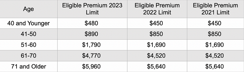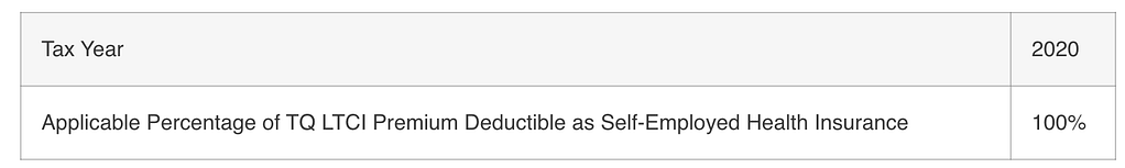 Prior to tax year 2003, only a percentage of the eligible Tax-Qualified Long-Term Care Insurance premiums paid by a self-employed individual were deductible as medical care expenses. However in tax year 2003 and thereafter, the full amount of the Tax-Qualified Long-Term Care Insurance premiums paid by the self-employed individual may be deducted (IRC Sec. 162(l)(1)(B). See the following table for more information.